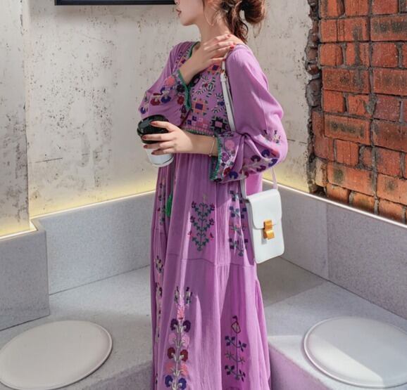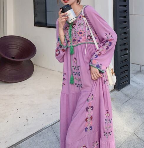 ボヘミアン 刺繍 ロング ワンピース 春夏 韓国 [gg-0532]