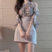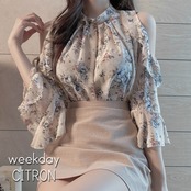 花柄 ブラウス オープンショルダー フリル 七分袖 韓国 [gg-0540]