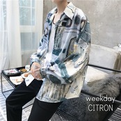 オーバーサイズ 総柄 アートプリント 長袖 メンズ シャツ [gg-0541]