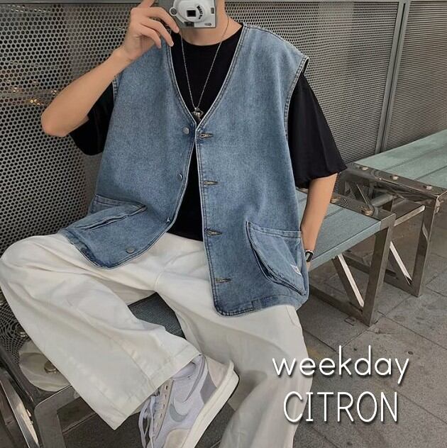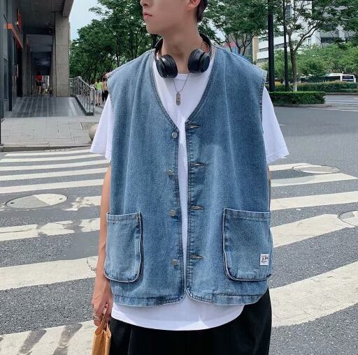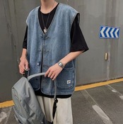 デニム カジュアル ベスト おしゃれ 無地 ノースリーブ [gg-0544]