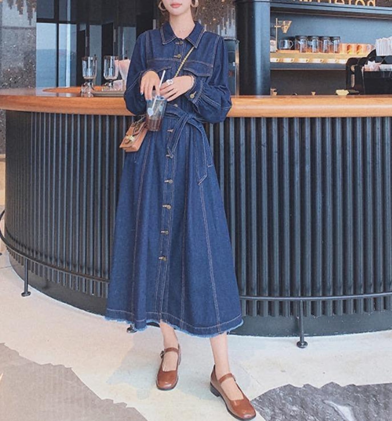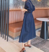 デニム シャツワンピース フロントボタン ウエストマーク [gg-0548]