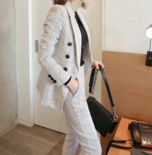フォーマル パンツスーツ ジャケット×パンツ 格子柄 [gg-0552]