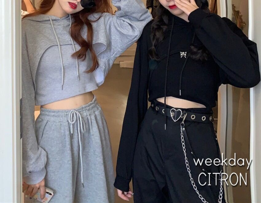 クロップドパーカー×キャミソール セット トップス [gg-0554]
