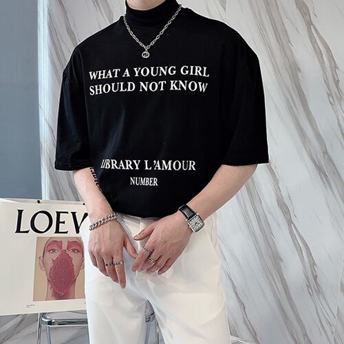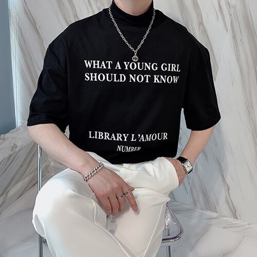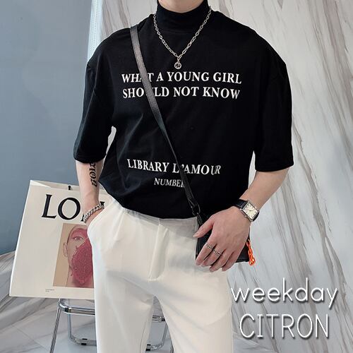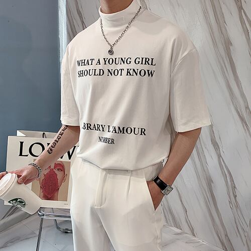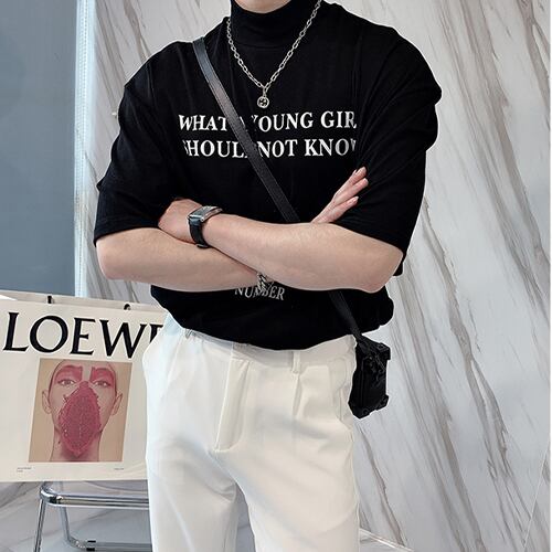 メンズ レタリング ハイネック Tシャツ 韓国 [gg-0556]