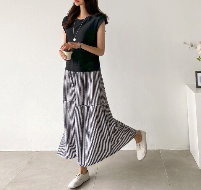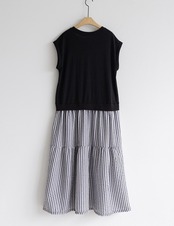 リンクルフリー ストライプ 配色 ワンピース [gg-0574]