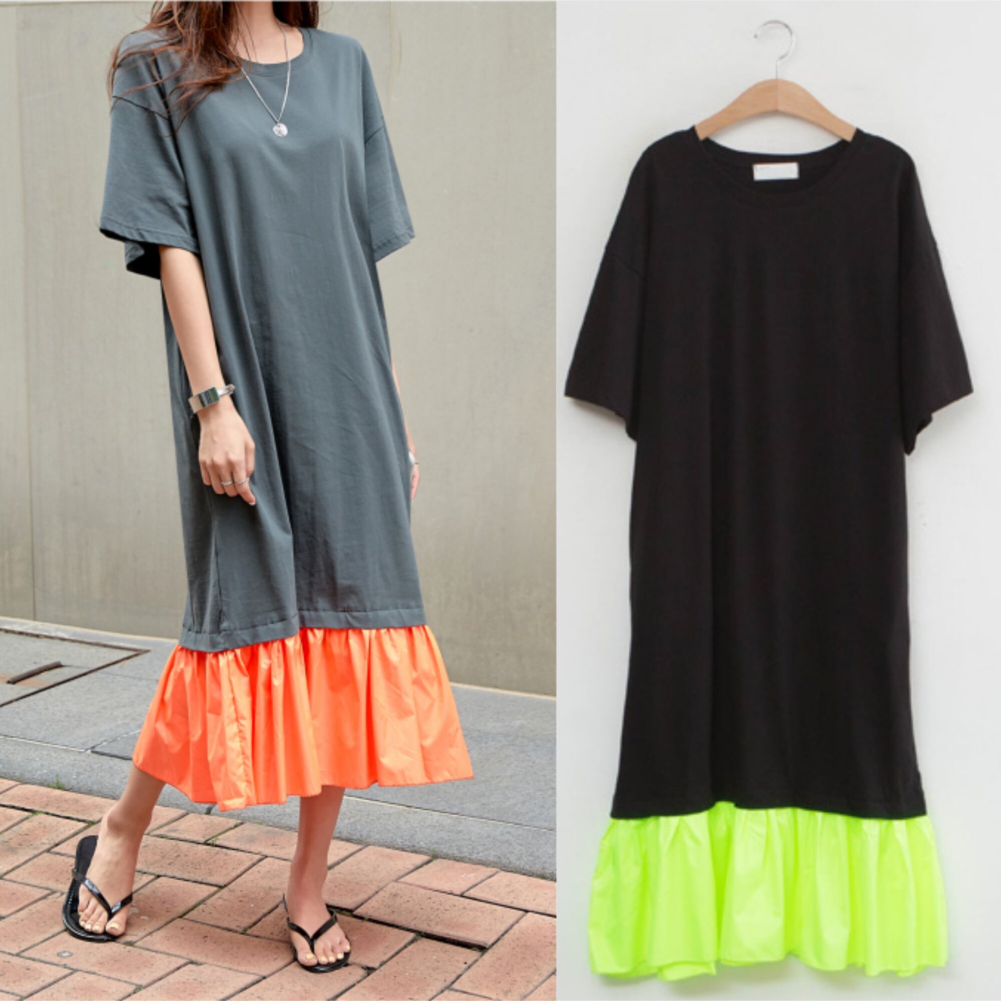 トレンド ネオンカラー フリル ロングワンピース [gg-0576]