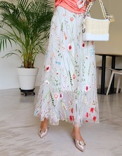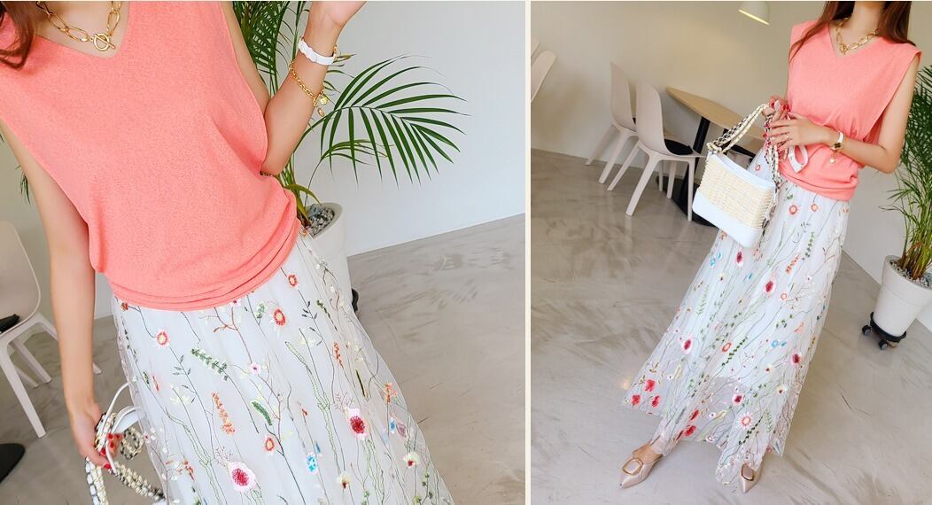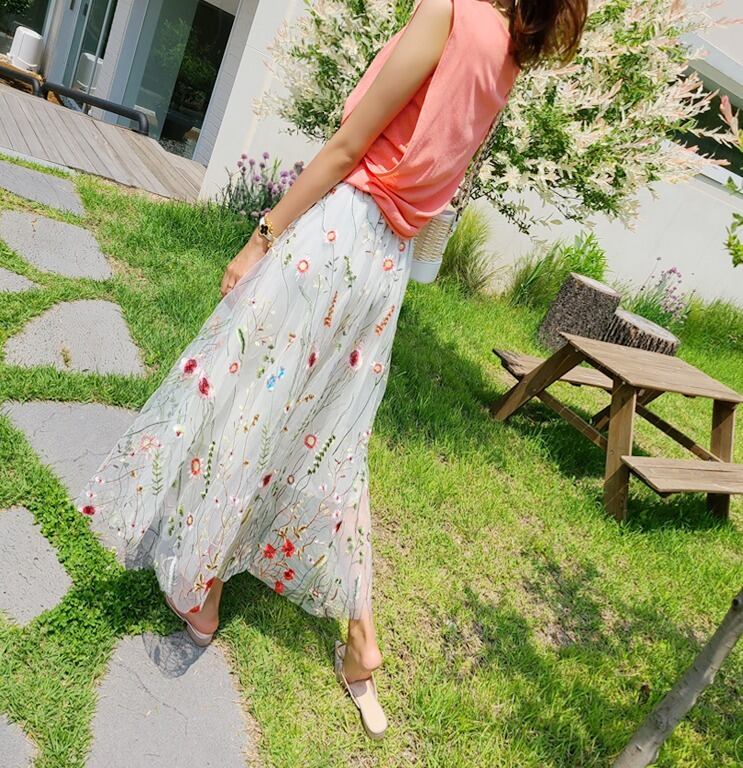 フラワー刺繍 シースルー ロングスカート [gg-0577]