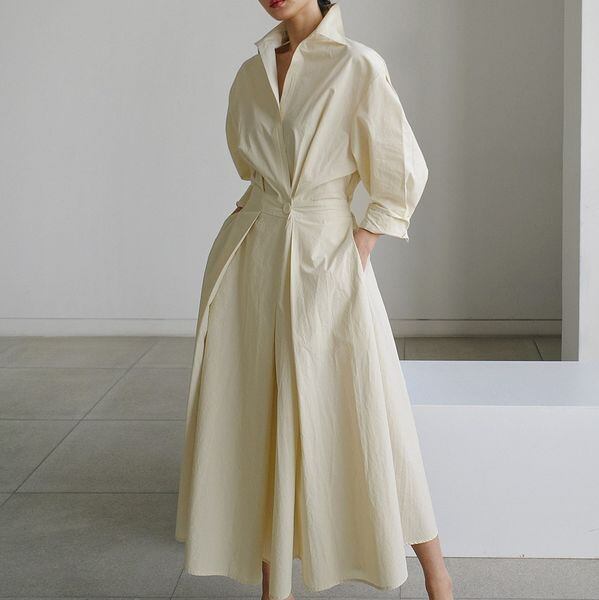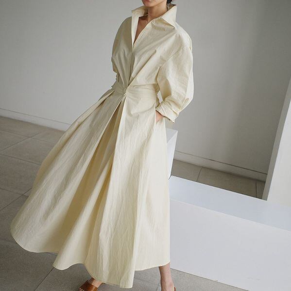 ワンピース 長袖 Aライン スキッパー ロング丈 [gg-0581]