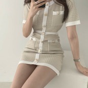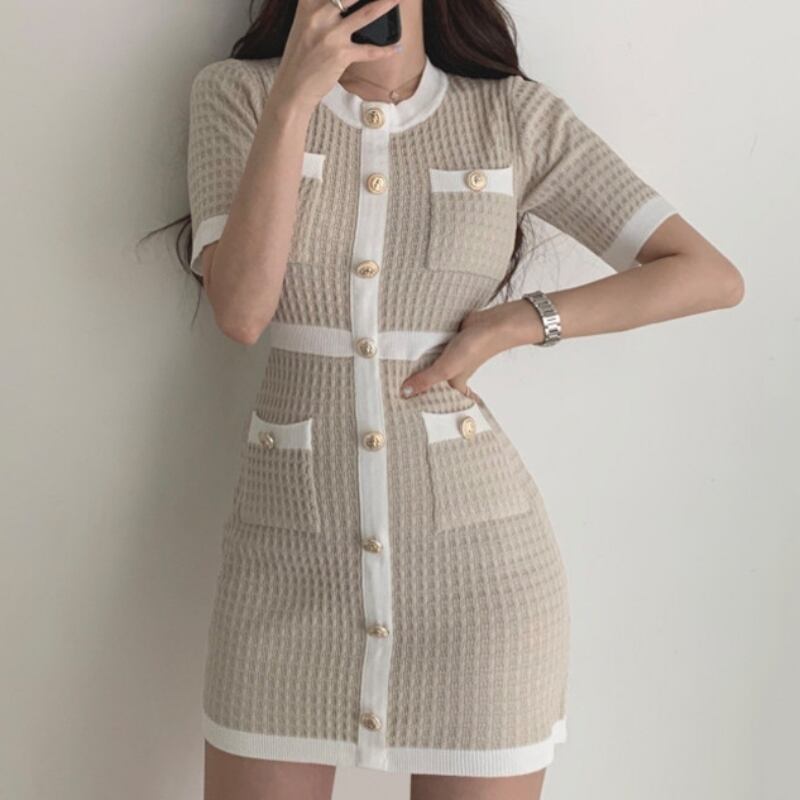 ワッフル地 サマーニット タイトワンピース ミニ丈 [gg-0587]