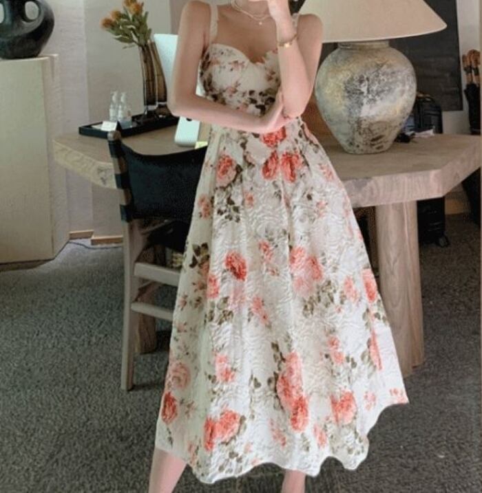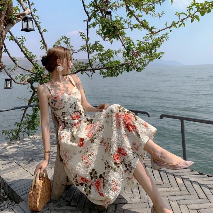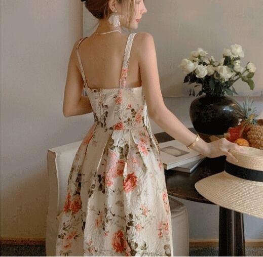 花柄 レトロ ワンピース ロング丈 ノースリーブ Aライン リゾート [gg-0588]