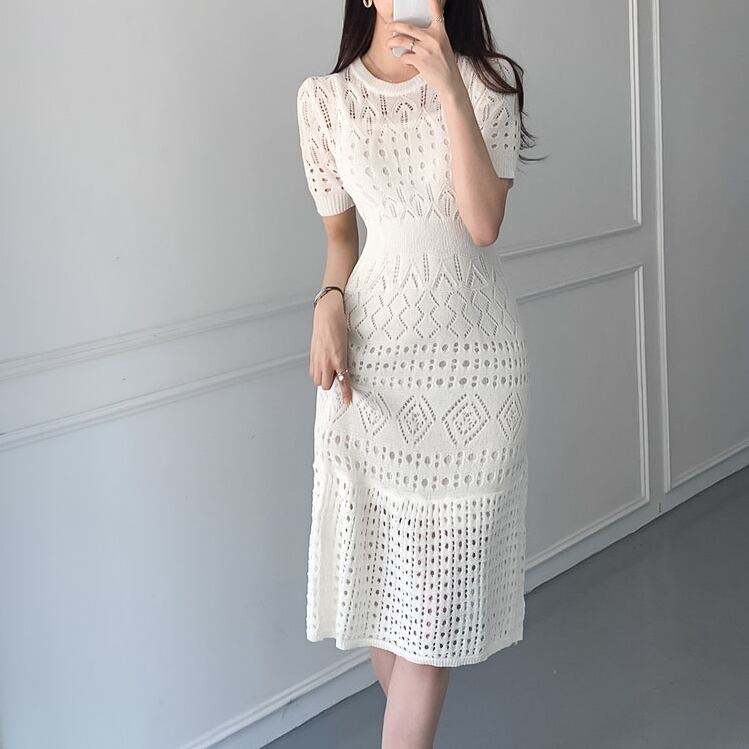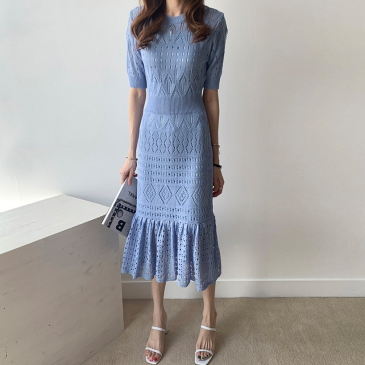 ワンピース 大人可愛い クロシェ編み マーメイド サマーニット[gg-0589]