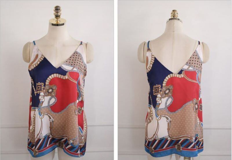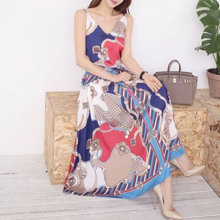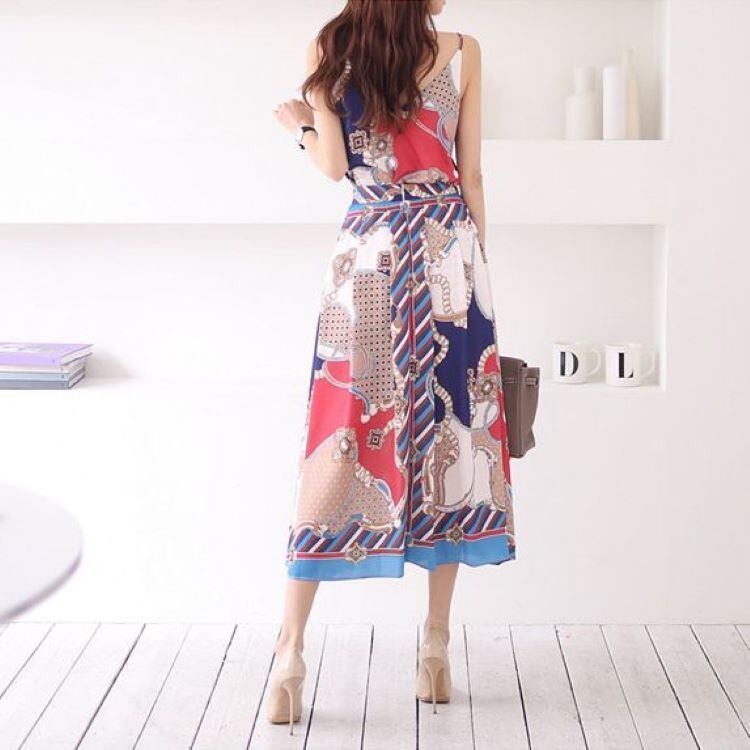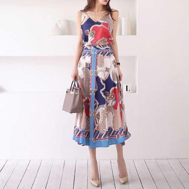 セットアップ スカーフ柄 Vネック キャミソール ミモレ丈 スカート [gg-0594]