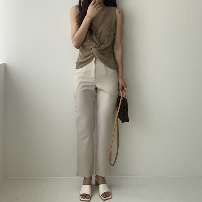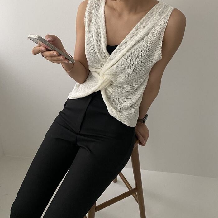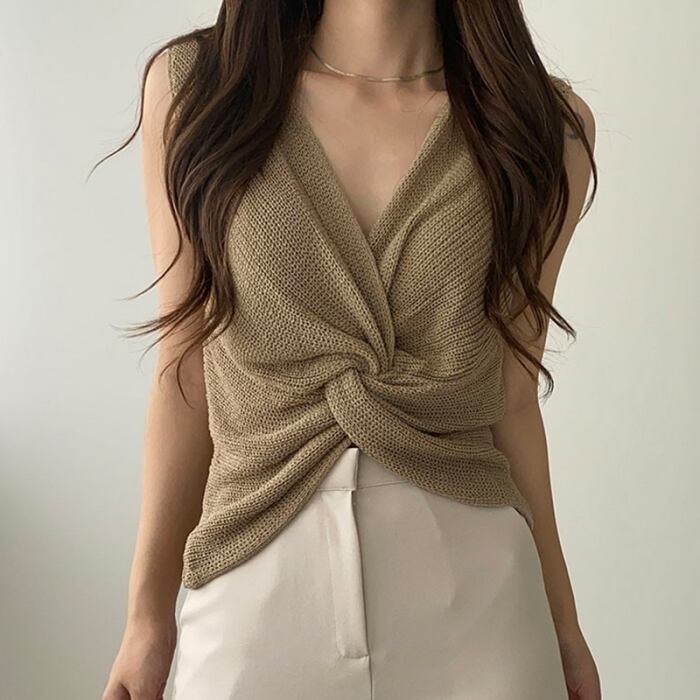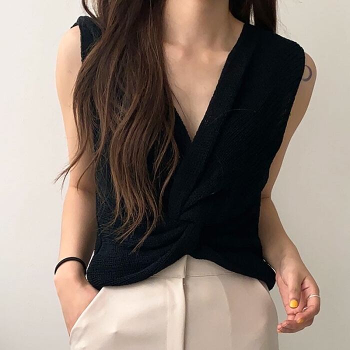 ツイストデザイン サマーニット タンクトップ Vネック [gg-0595]