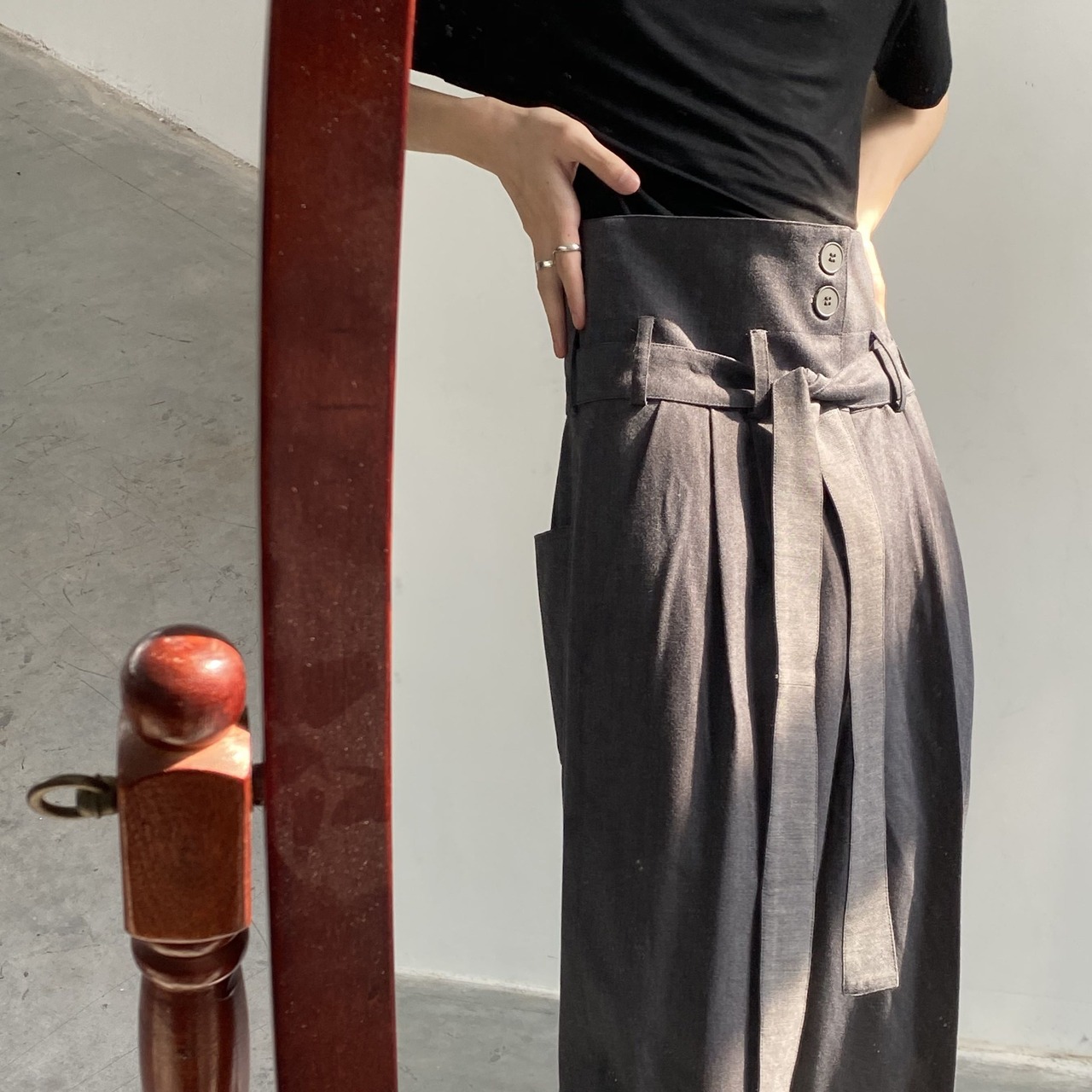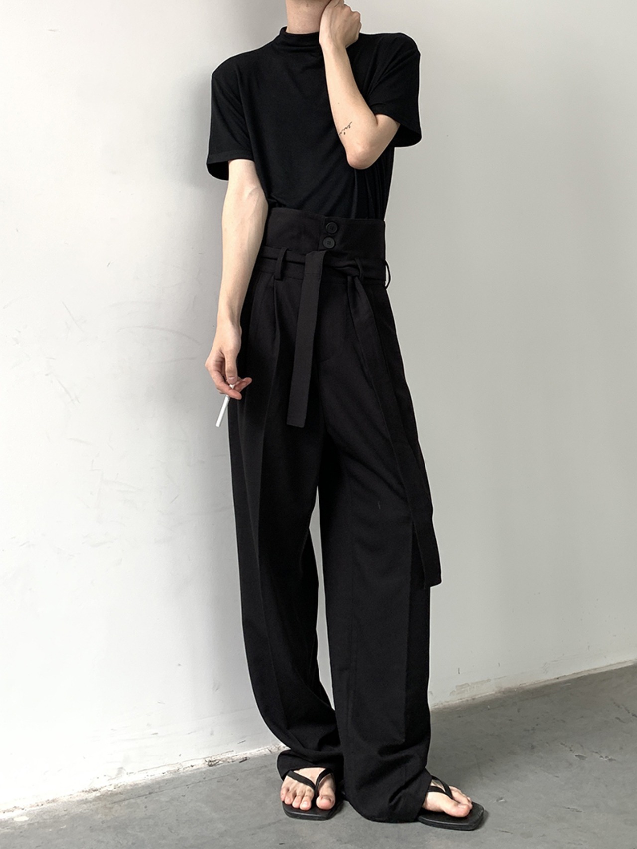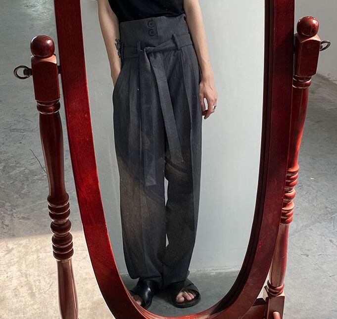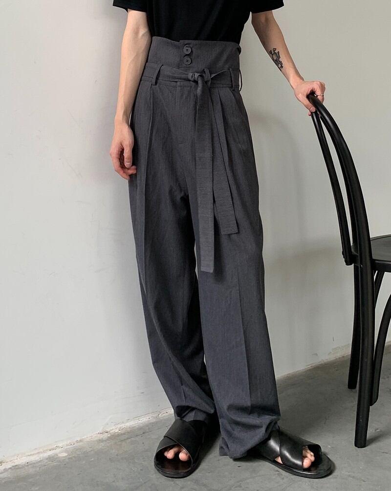 全2色 ウエストストラップ スラックス 韓国 ハイウエスト [gg-0710]