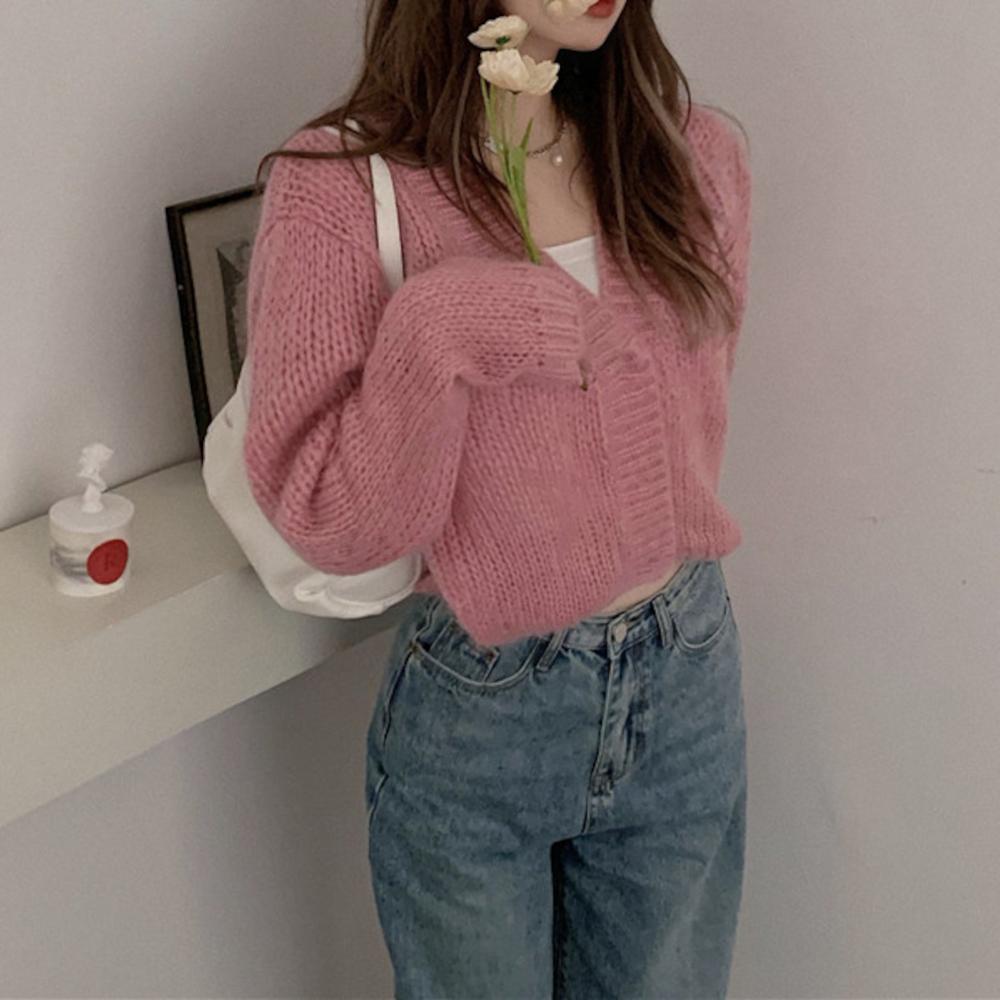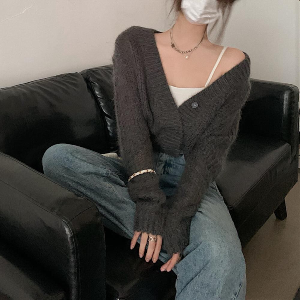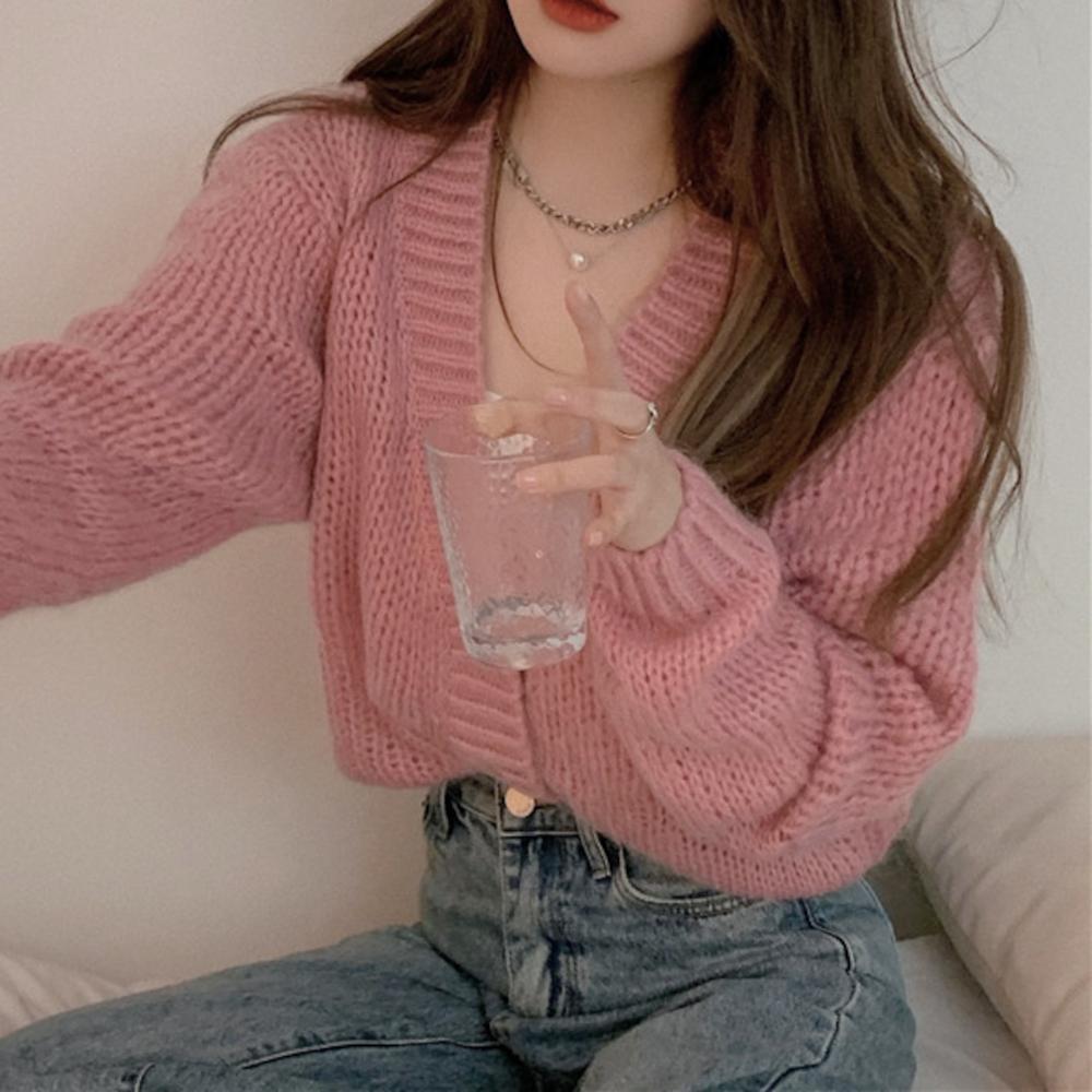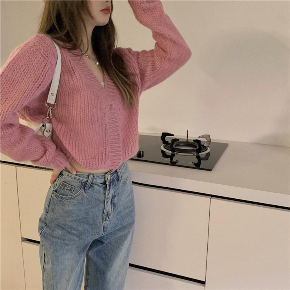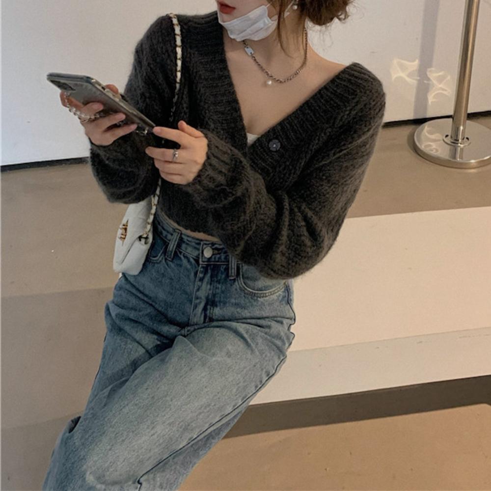 ショート Vネック カーディガン 韓国 ルーズ [gg-0722]