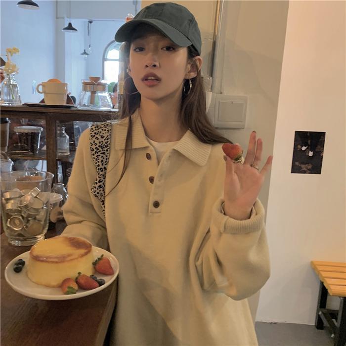 ニットポロ トップス ナチュラル 抜け感 韓国 [gg-0723]