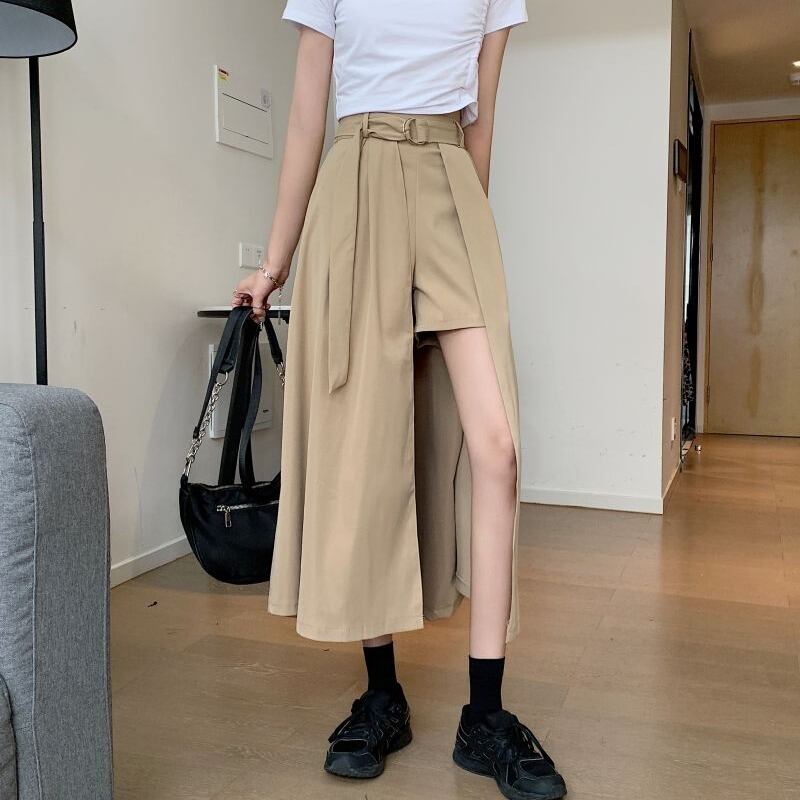 ショーパン スカート アシメ パンツ ベルト付 韓国 [gg-0724]