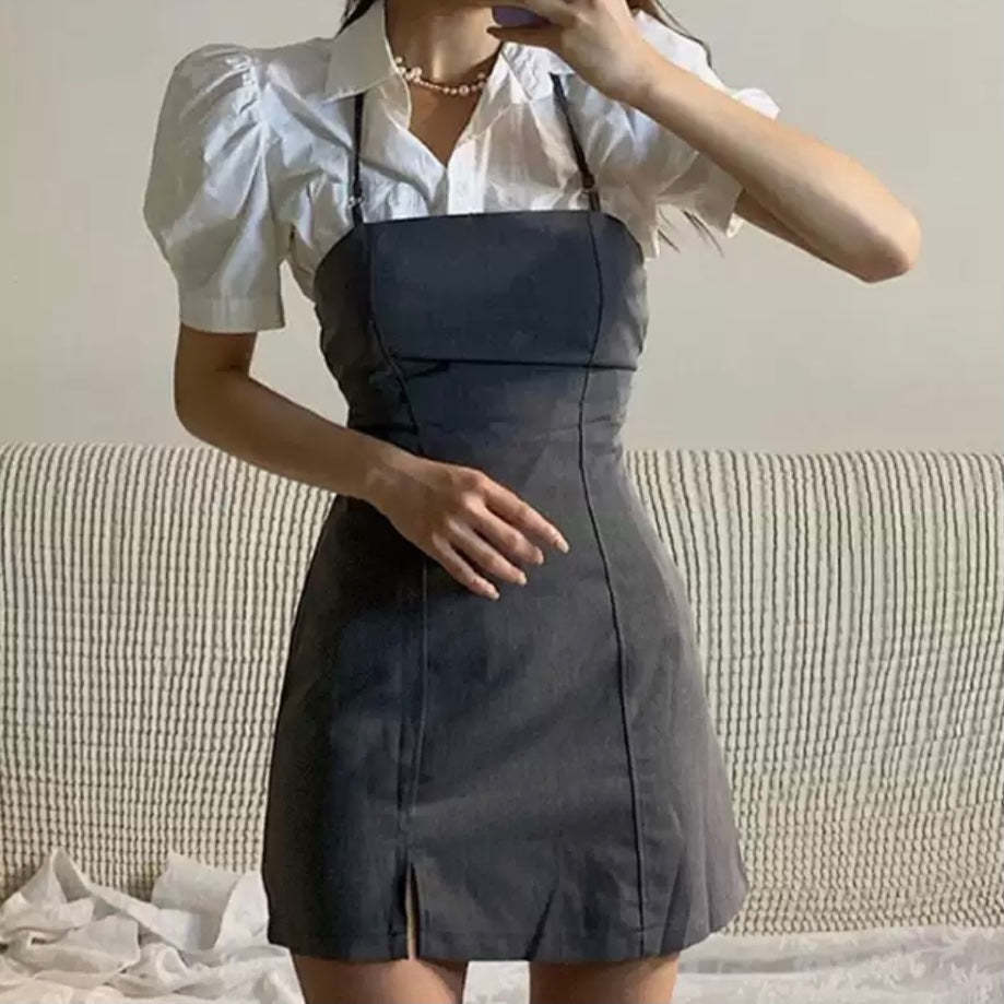 ミニ丈 ブラウス × キャミソールワンピース [gg-0729]