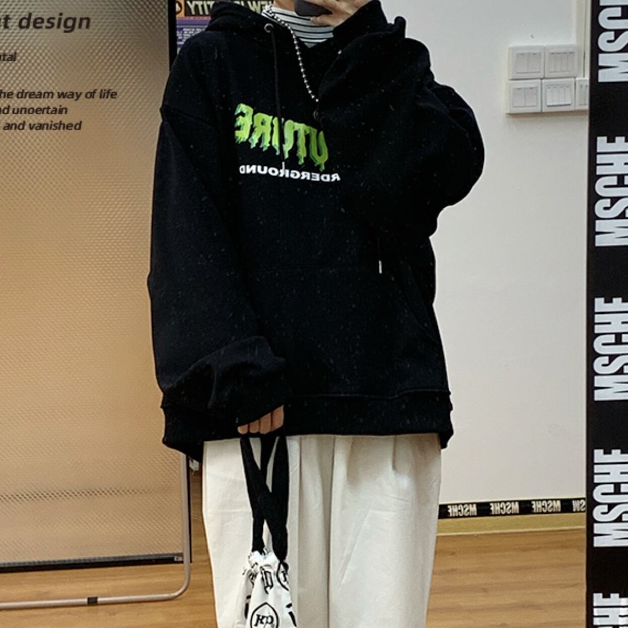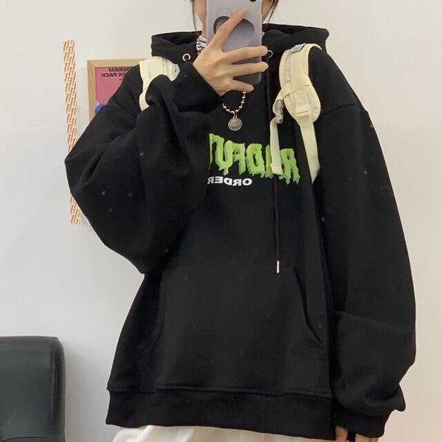 ロゴ パーカー ストリート 黒 韓国 [gg-0733]