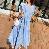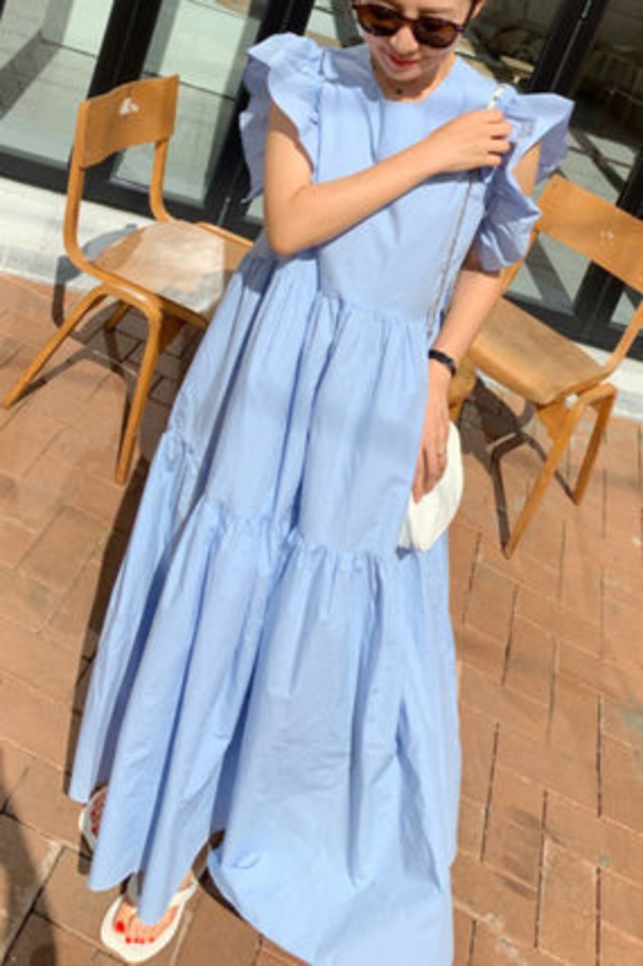 韓国 ファッション ワンピース ノースリーブ フリル袖 ティアード [gg-0762]