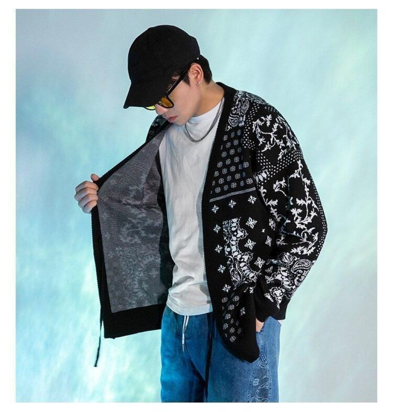 韓国 カーディガン オーバーサイズ 総柄 ペイズリー [gg-0765]