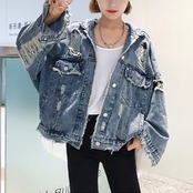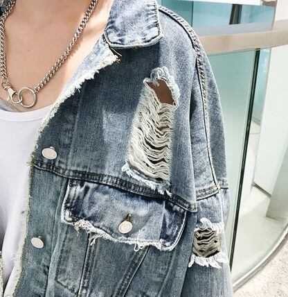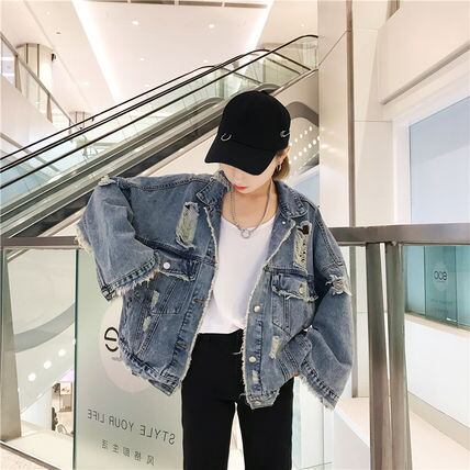 Gジャン カジュアル デニム ジャケット ダメージ加工 無地 [gg-0770]