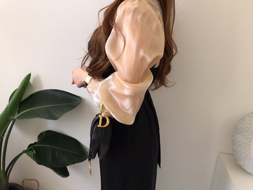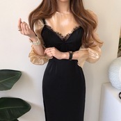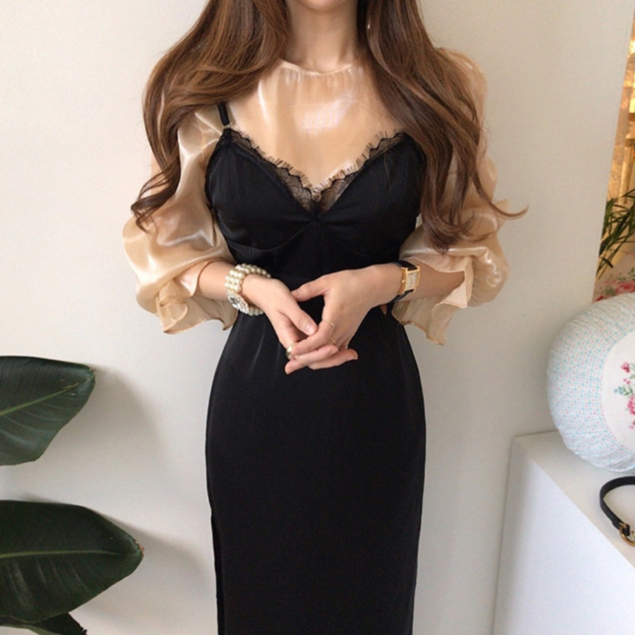 セットアップ グロッシーブラウス レースワンピース ロング 韓国 [gg-0606]