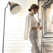 セットアップ ショール風 トップス パイソン柄 ペンシルスカート [gg-0613]
