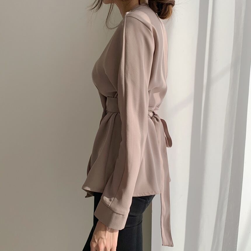 カシュクール ブラウス 長袖 バックリボン 上品 きれいめ 韓国 [gg-0616]