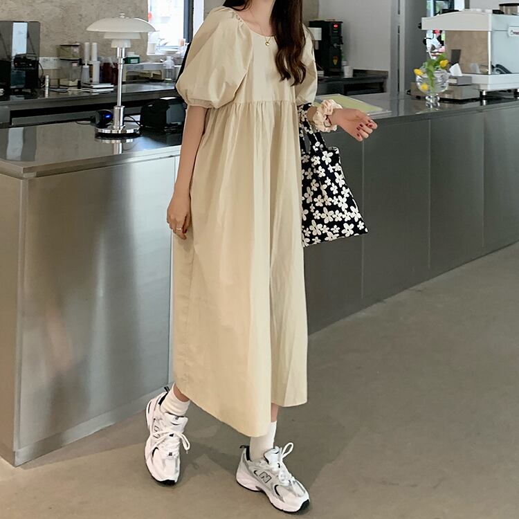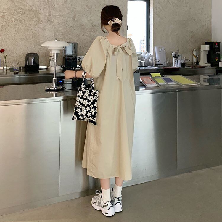 バックリボン パフスリーブ ワンピース オーバーサイズ 2color [gg-0620]