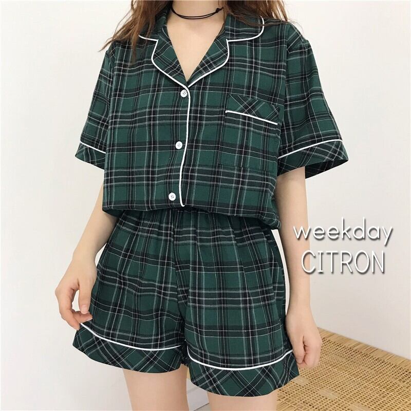 チェック柄 半袖 ルームウェア 上下セット 韓国 [gg-0628]
