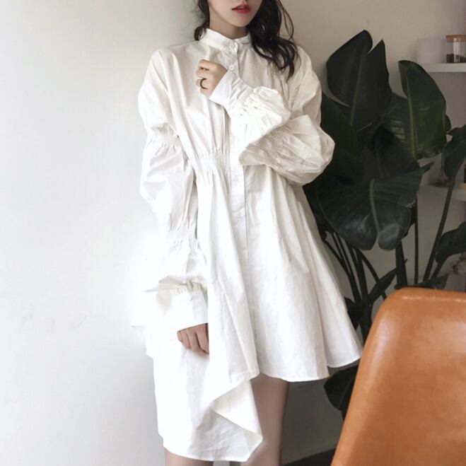 アシンメトリー シャツ ワンピース ボリュームスリーブ [gg-0647]