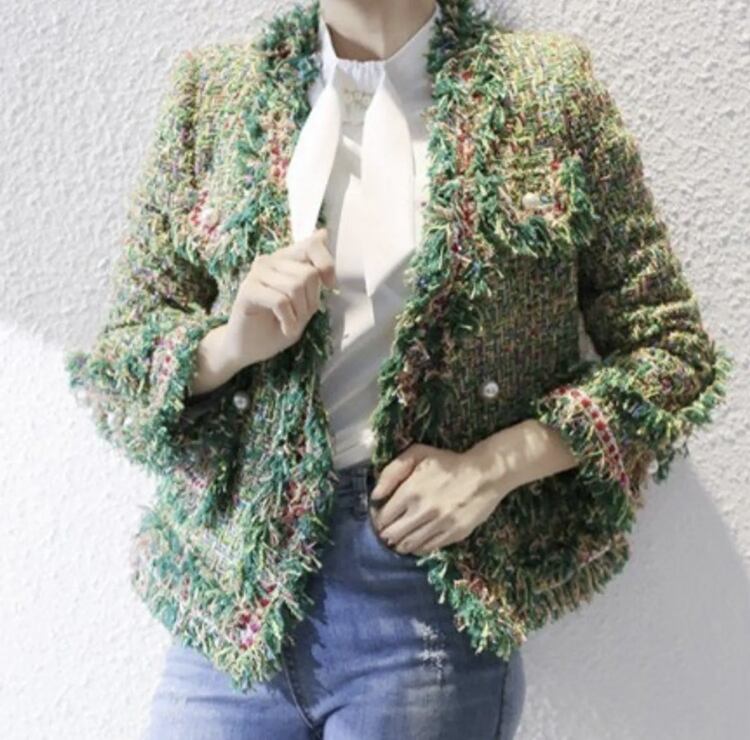ツイード ジャケット おしゃれ 3色 エレガント 韓国 [gg-0671]