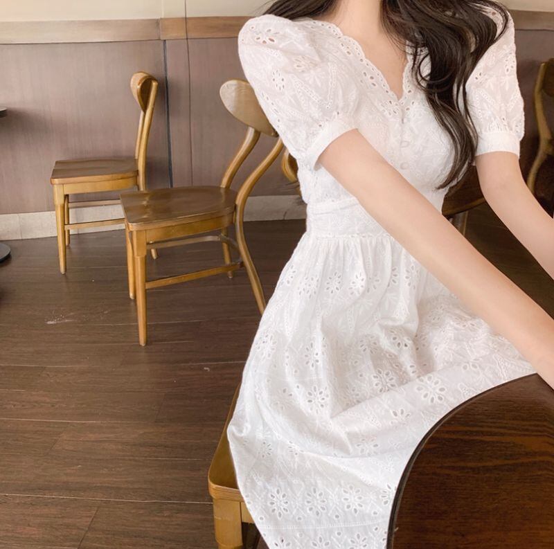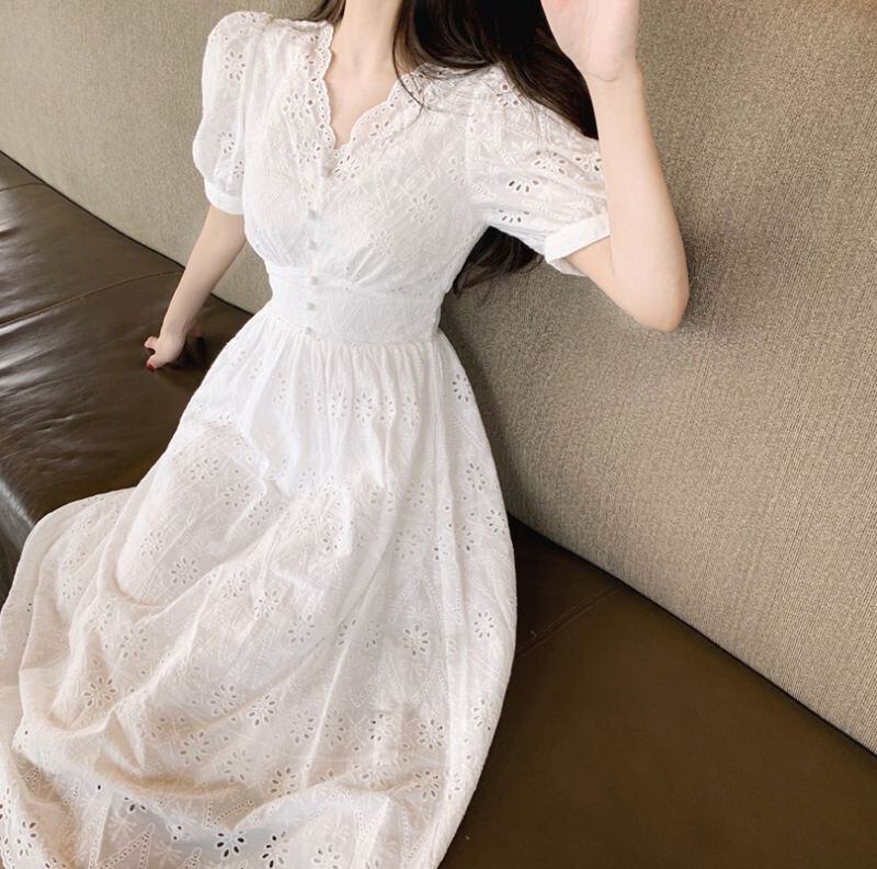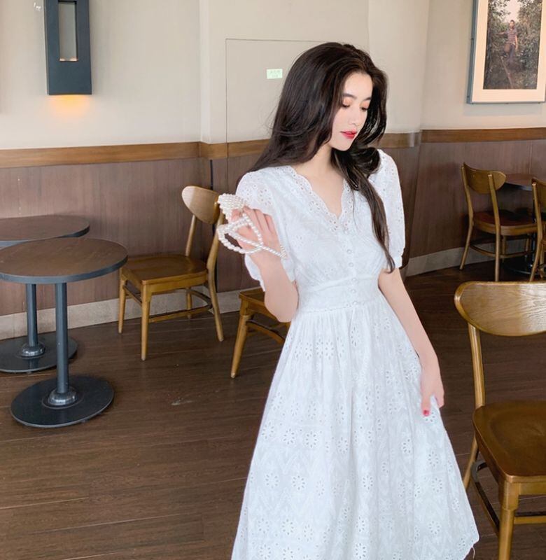 花柄 レース Vネック ロング ワンピース フレア Aライン 韓国 [gg-0785]
