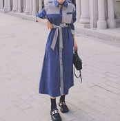 コーデュロイ バイカラー ロング ワンピース マキシ リボン 大人 [gg-0793]
