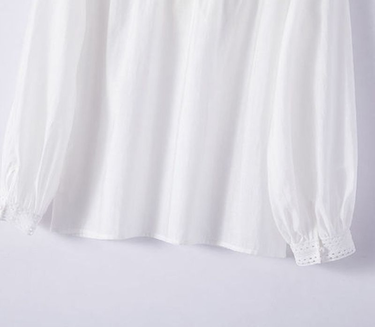ブラウス シャツ レディース 白 長袖 韓国 レース ハイ ネック [gg-0799]