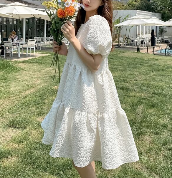 パフスリーブ ティアード ワンピース Aライン [gg-0847]