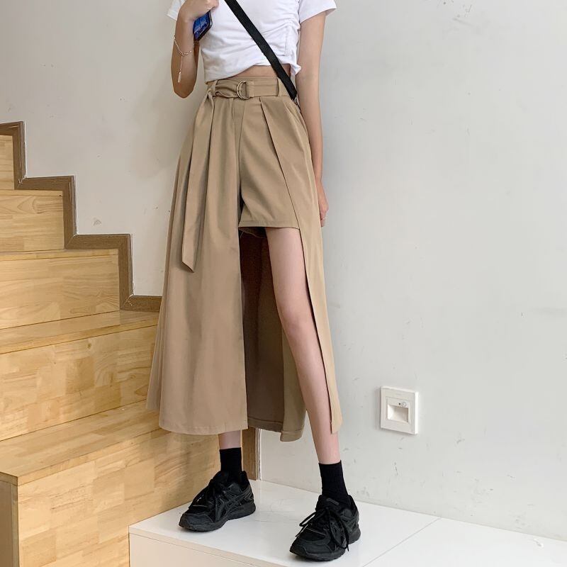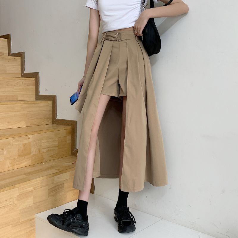 ショーパン スカート アシメ パンツ ベルト付 韓国 [gg-0863]