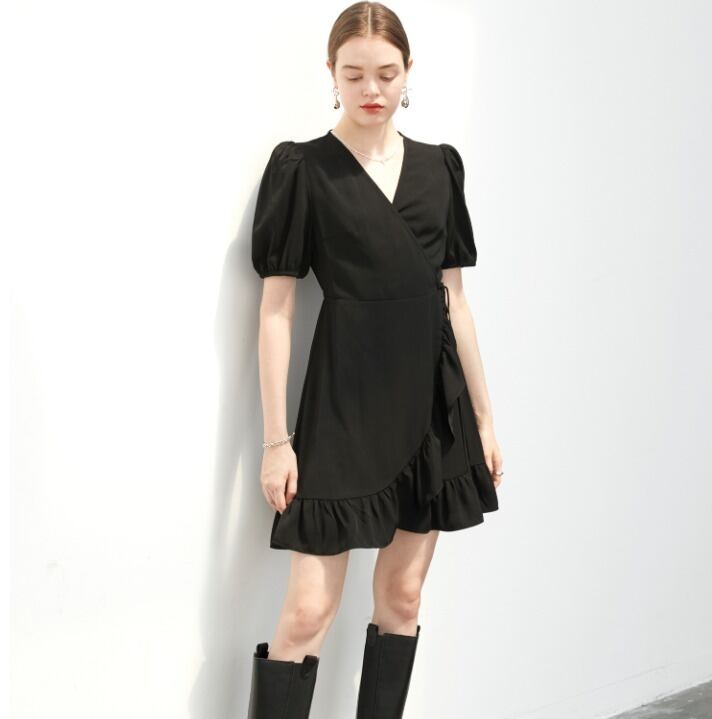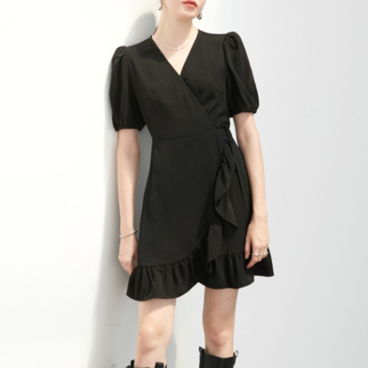 エレガント フリル ラップドレス ワンピース 韓国 [gg-0869]