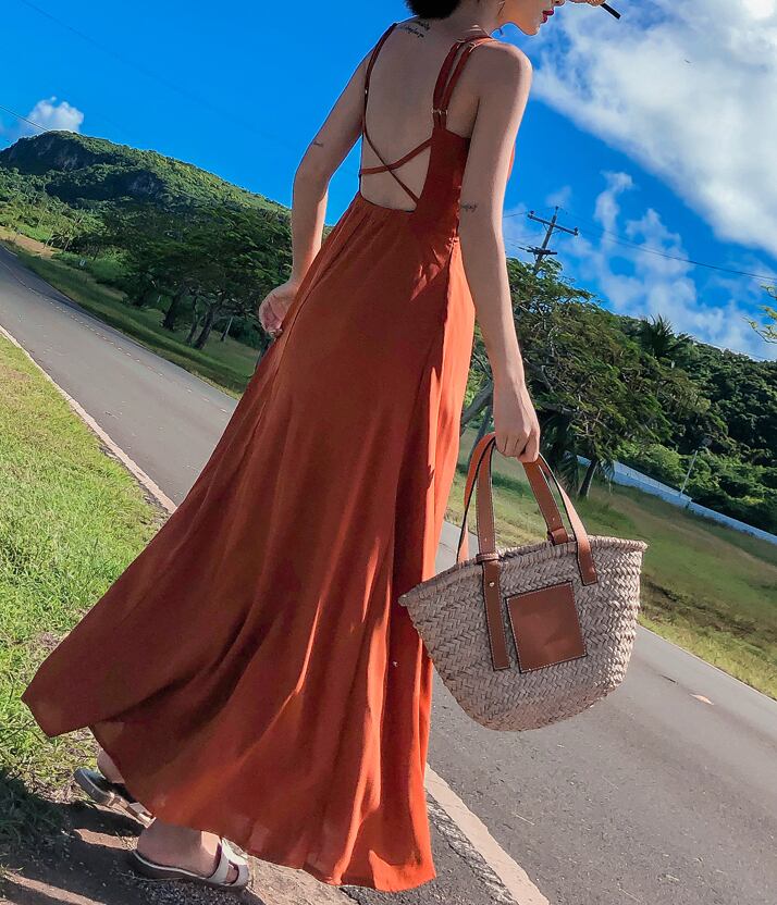 バッククロス ダブルストラップ ロングワンピース [gg-0872]