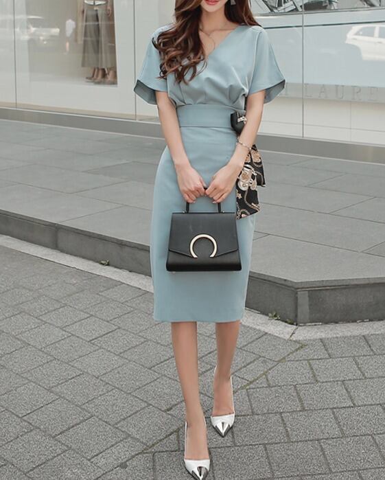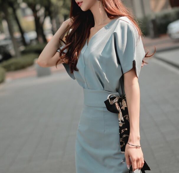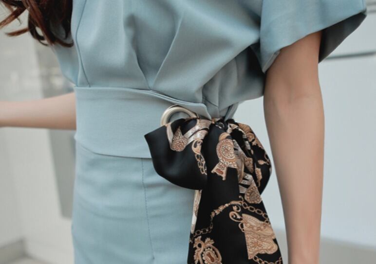 スカーフモチーフ ツーピース ドレス 韓国 ミディ丈 [gg-0880]