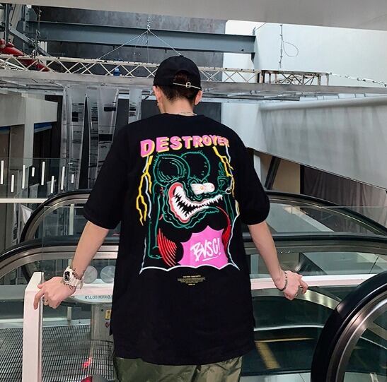 バックロゴ ストリート オシャレ 肩落ち 半袖 Tシャツ [gg-0886]