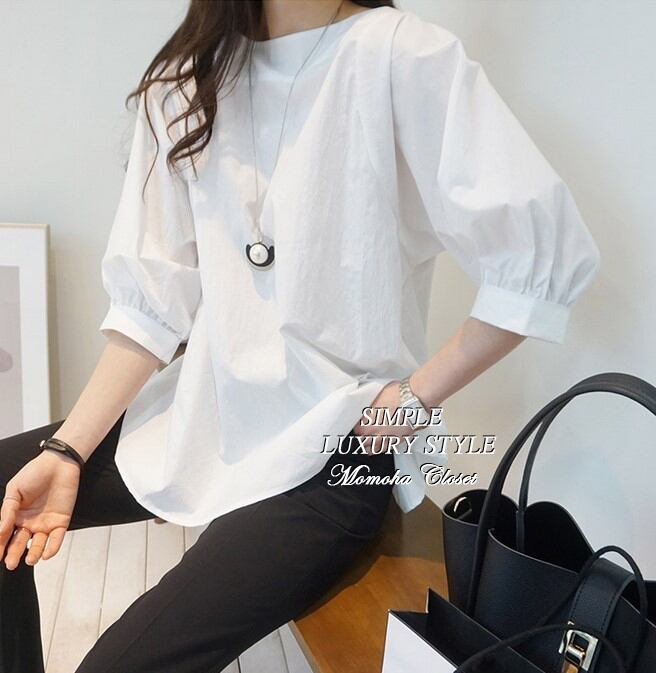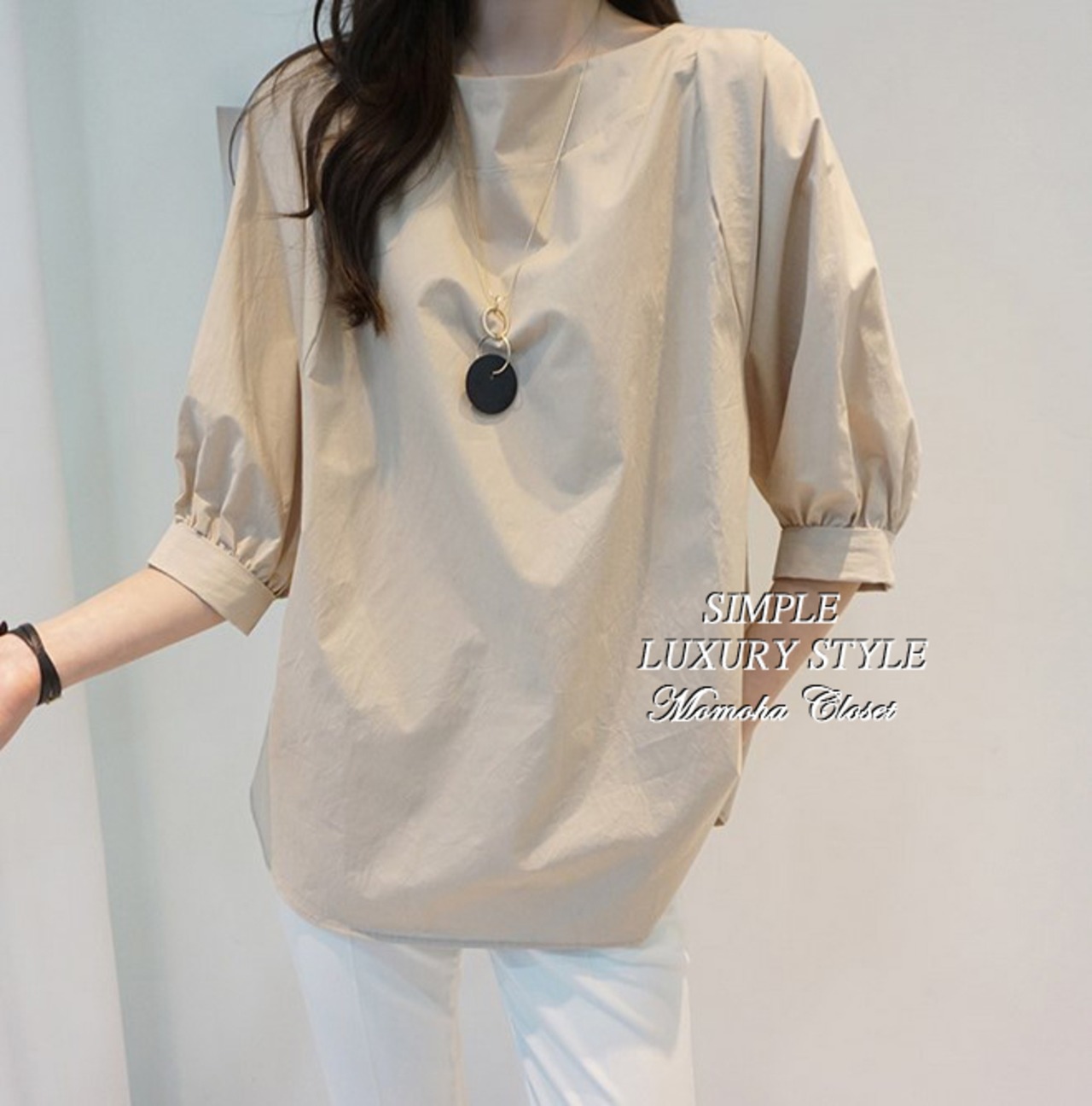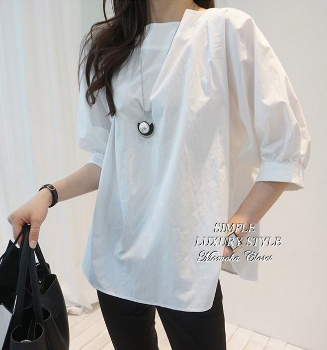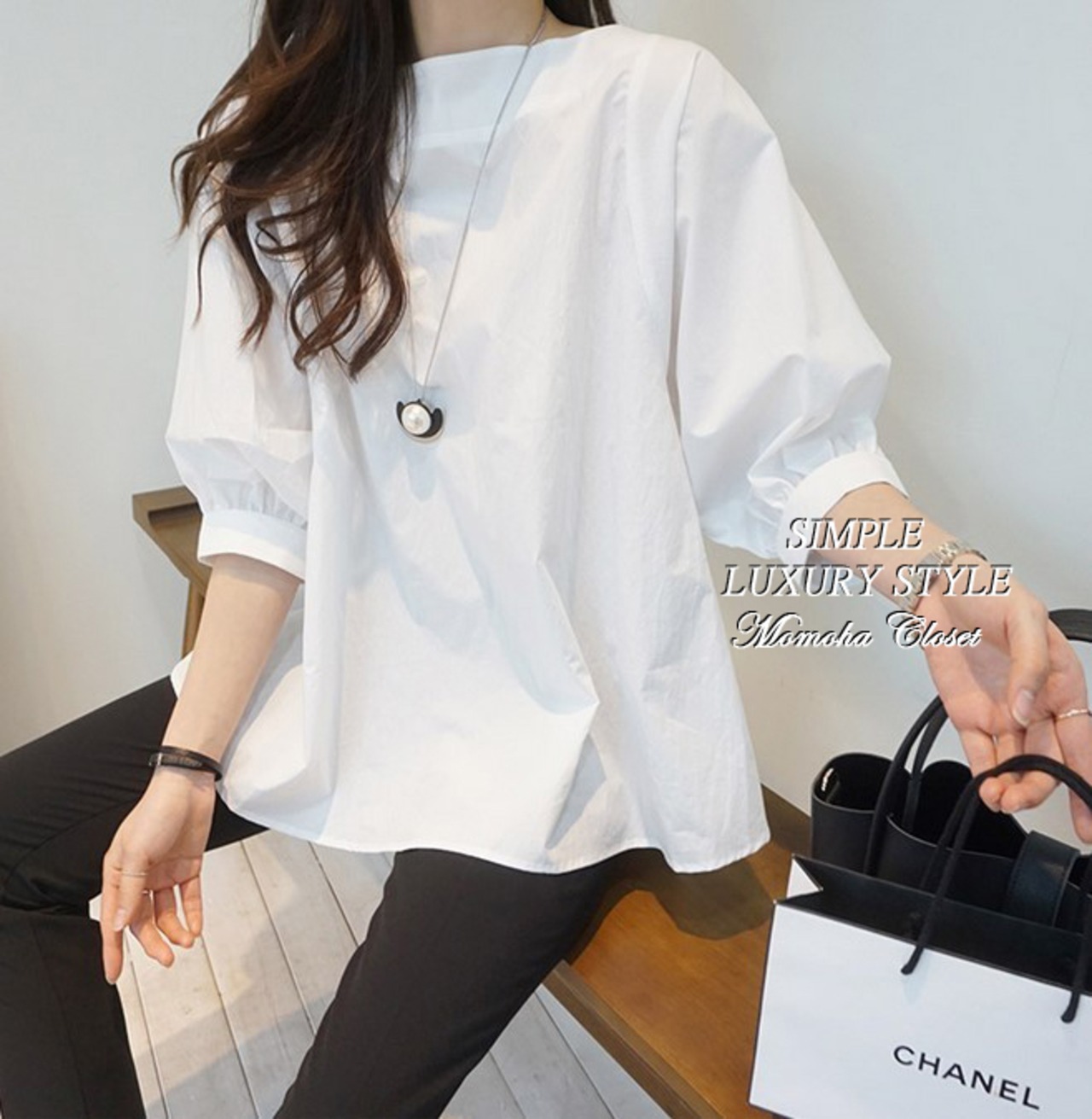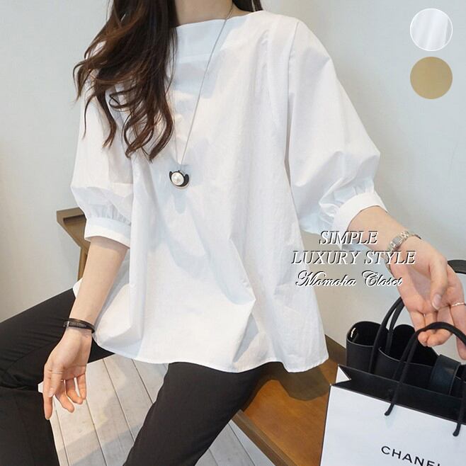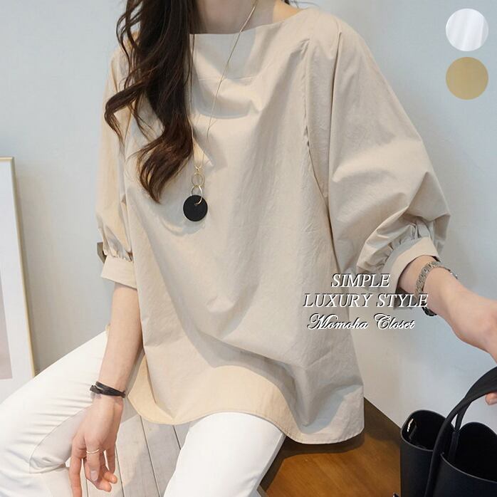 ボートネック バルーンスリーブ コットン ブラウス [gg-0922]