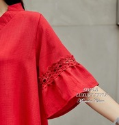 Vライン ベルスリーブ 刺繍レース フレア ブラウス [gg-0925]