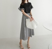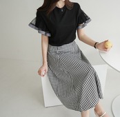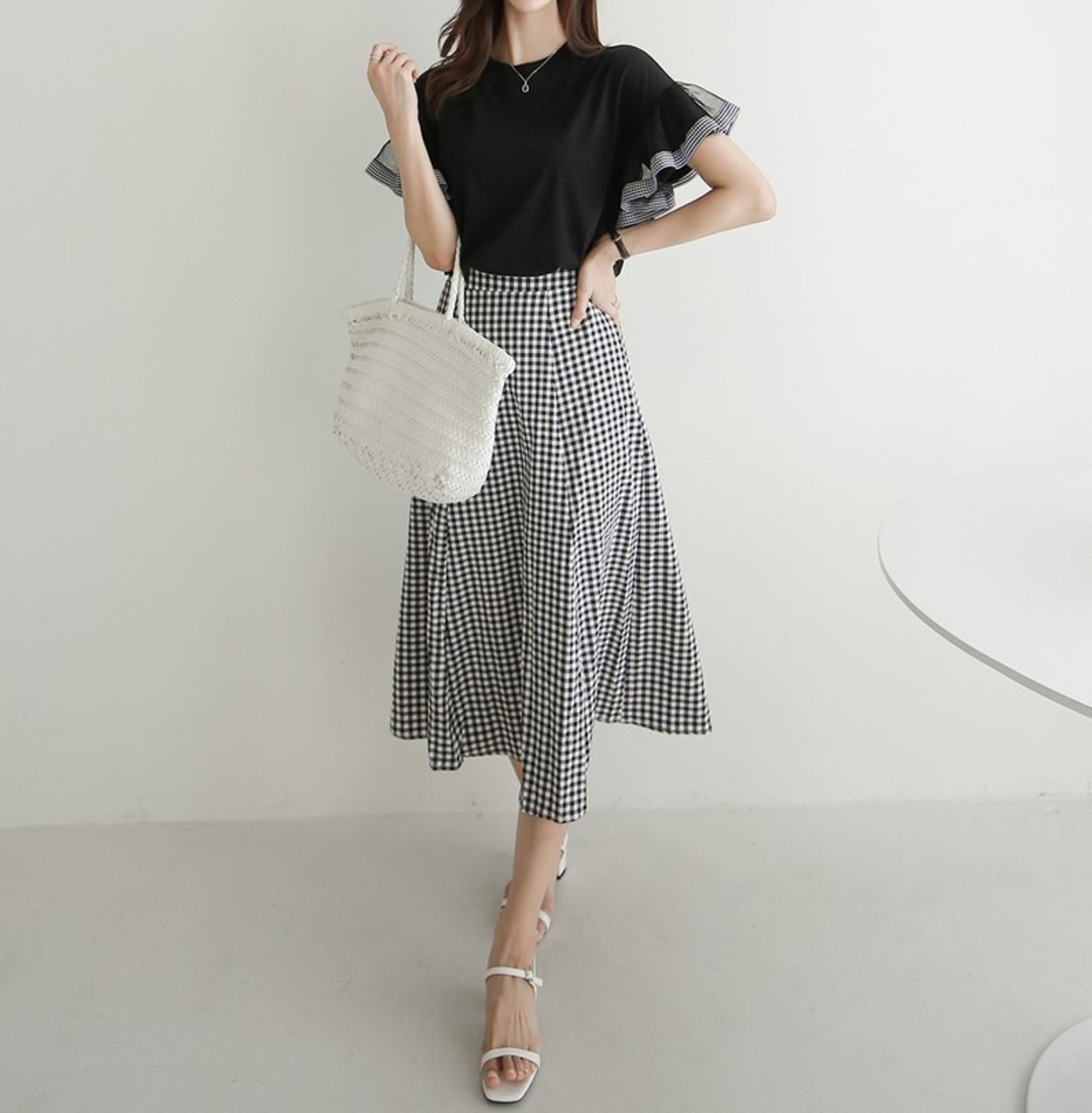 チェック オーガンジー ダブルフリル Tシャツ [gg-0933]