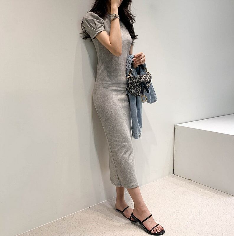 パフスリーブ スリム ロング ワンピース [gg-0944]