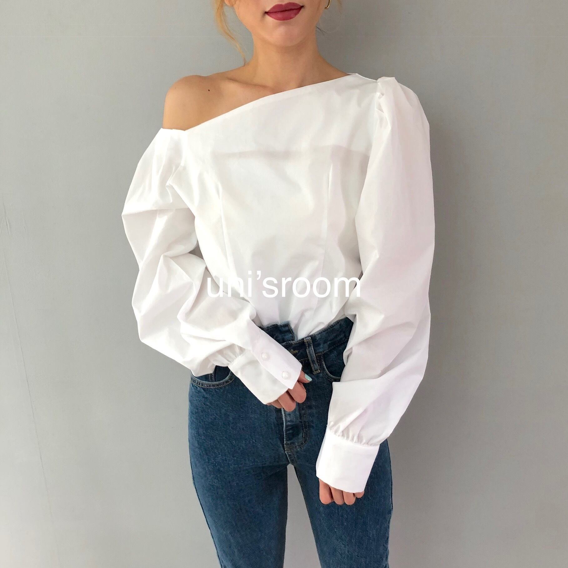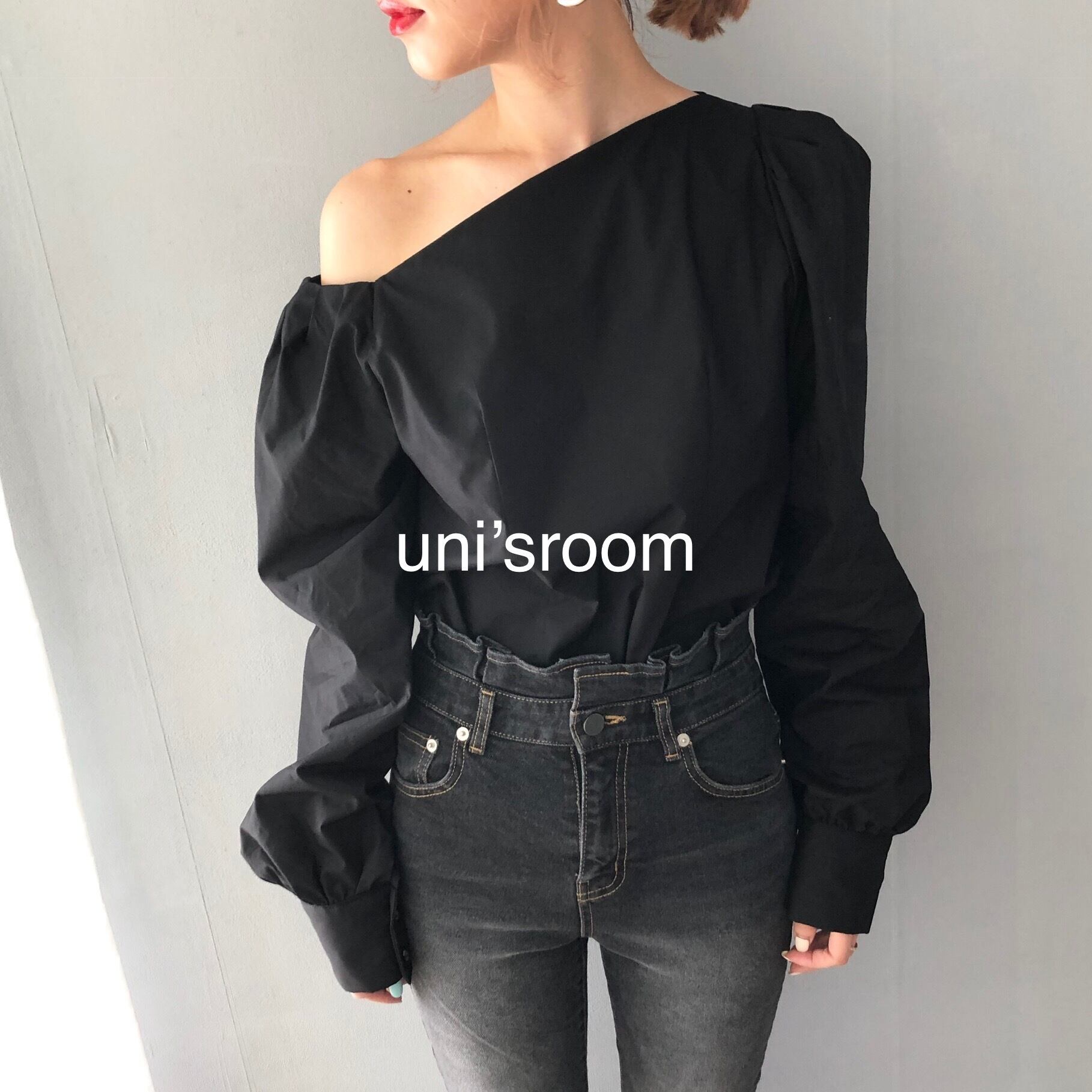 韓国 デザイン ワンオフショルダーブラウス [gg-0946]