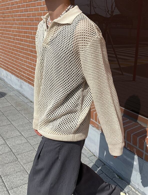 メンズ カラー ニット Collar Knit 3色 [gg-0961]