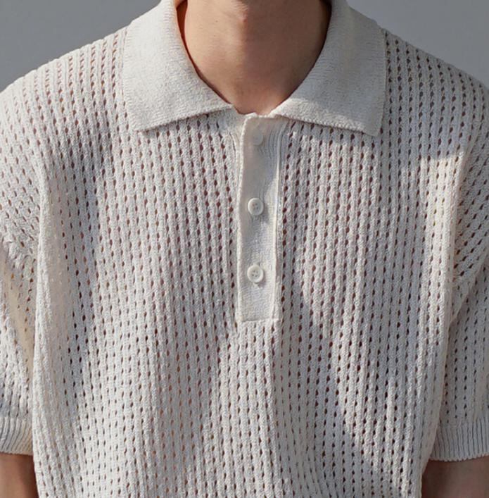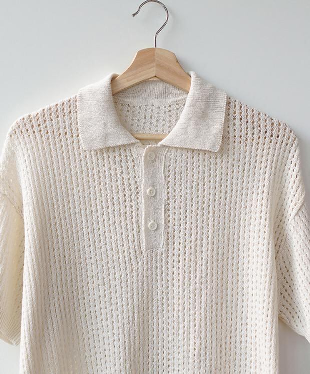 メンズ メッシュ ニット ポロシャツ トップス 韓国 [gg-0962]