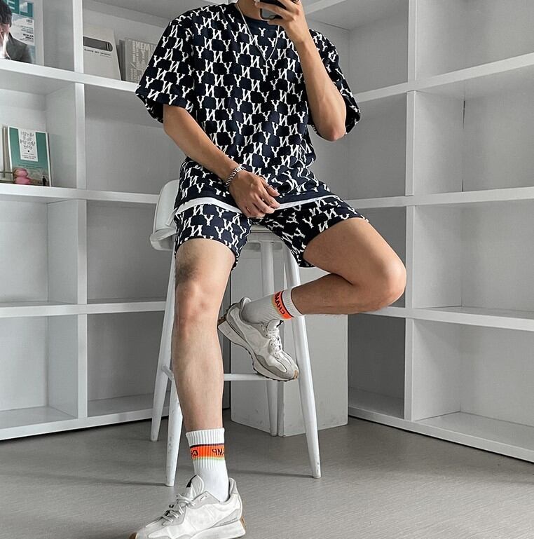 幾何学 ロゴ Tシャツ& ハーフパンツ セットアップ [gg-0963]